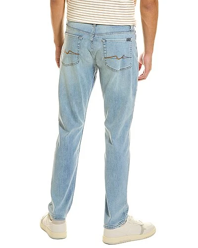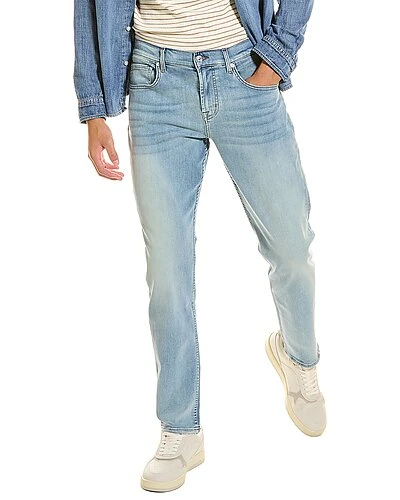 - Adrien Slim Tapered in alps blue with belt loops, whiskering and fading details, and classic five-pocket styling