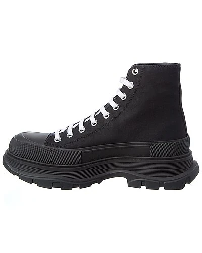 - Tread Slick Canvas Boot in black canvas and silver-tone hardware with chunky sole with logo accent