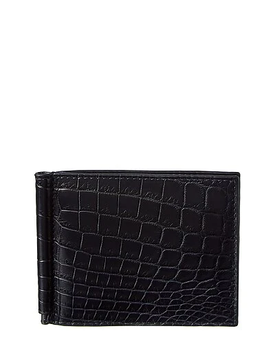 - Croc-Embossed Leather Wallet in tourmaline croc-embossed leather and matte silver-tone hardware