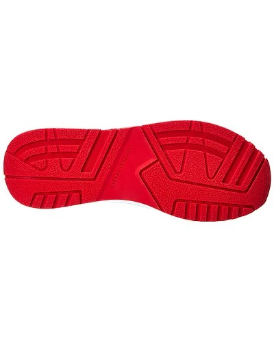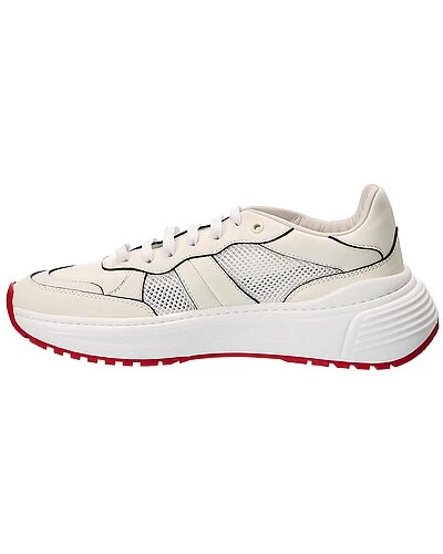 - Speedster Leather & Mesh Sneaker in black and white leather and mesh with contrast sole