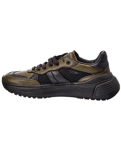 - Speedster Leather & Mesh Sneaker in black and dark green leather and mesh with contrast sole