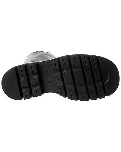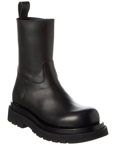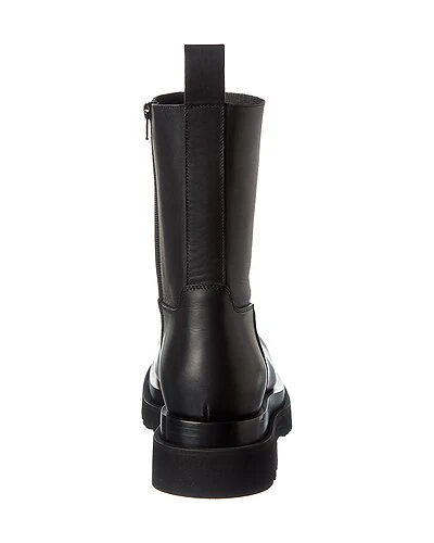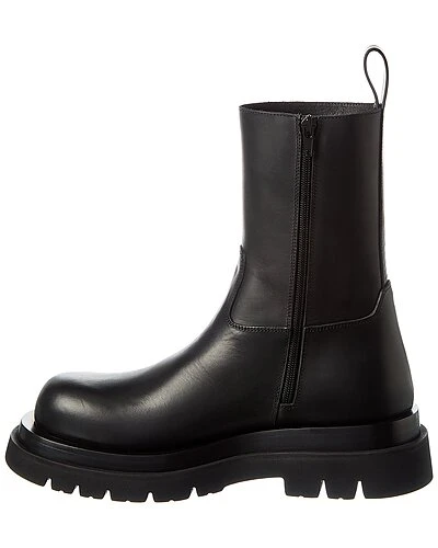 - Zipped Leather Boot in black leather and black hardware with chunky sole and pull-on tab