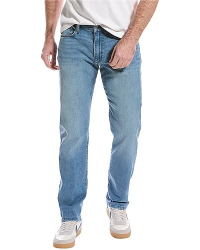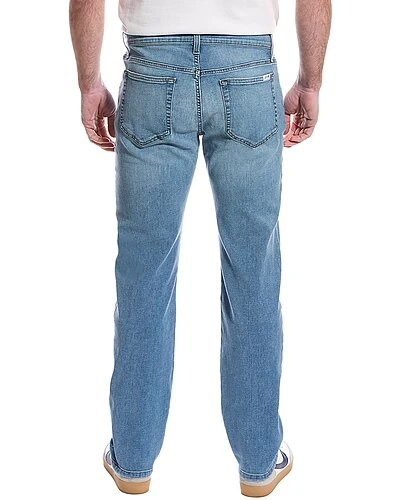 - Brixton straight leg in medium wash with belt loops and V-seam at back, and classic five-pocket styling