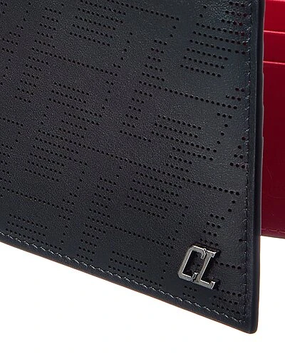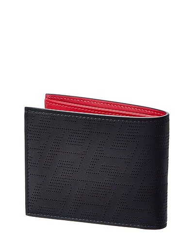 - M Coolcard Leather Bifold Wallet in black leather and silver-tone hardware with perforated logo detailing and metal logo accent