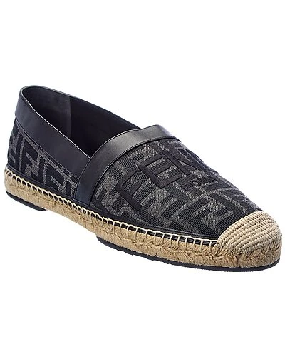 - FF Canvas & Leather Espadrille in black FF motif canvas and leather with logo embroidery