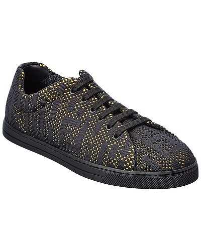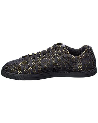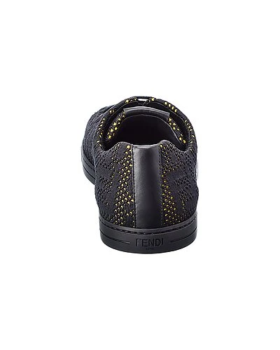 - FF Knit Sneaker in black and yellow knit textile with logo intarsia design