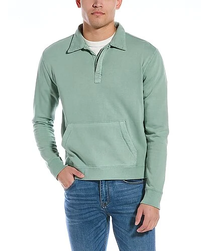 - Garment Dye Polo Pullover in sea moss with dropped-shoulder sleeves, kangaroo pocket, and rib trim