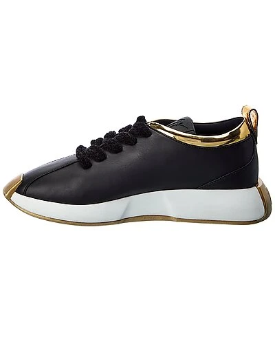 - Omnia Leather Sneaker in black and gold leather with chenille laces