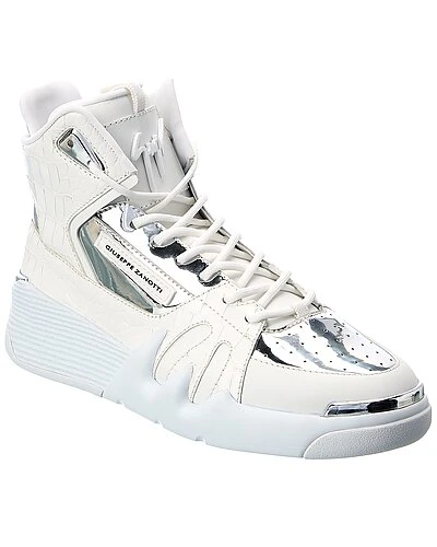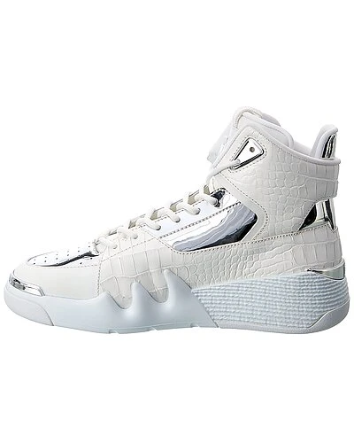 - Talon Croc-Embossed Leather Sneaker in white croc-embossed leather and silver patent leather with logo accent