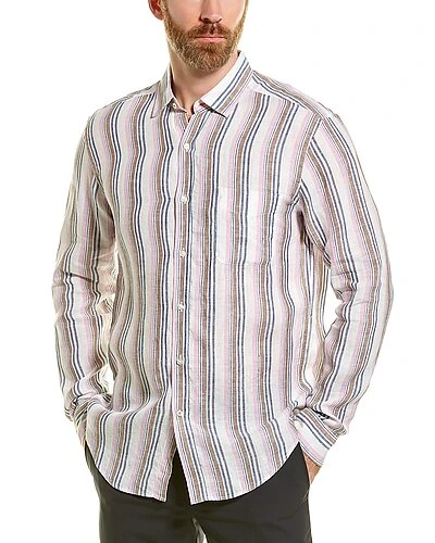 - Gramercy Woven Shirt in white & denim & pink & bro with spread collar, left chest pocket, and button cuffs