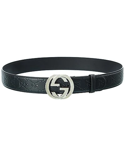 - Design details: interlocking G logo silver-tone pin buckle closure