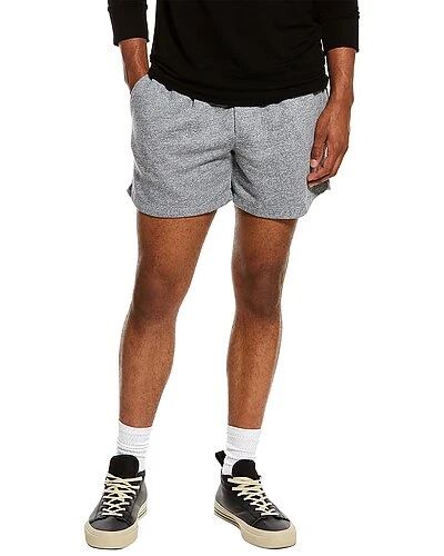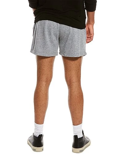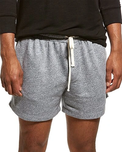 - Gym Short in heather grey with elasticized waistband and side slip pockets