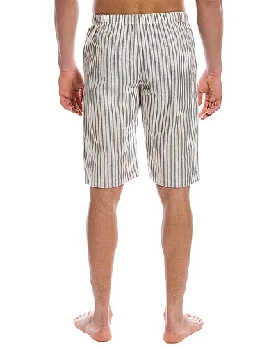 - Linen-Blend Loungewear Short in white and blue stripe with drawstrings from elasticized waistband