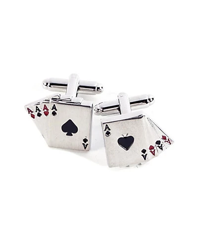 - Set of two silver rhodium-plated cufflinks with four ace designs
