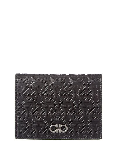 - Gancini Leather Card Case in black Gancini-embossed leather and silver-tone hardware with Gancini details and zippered pocket