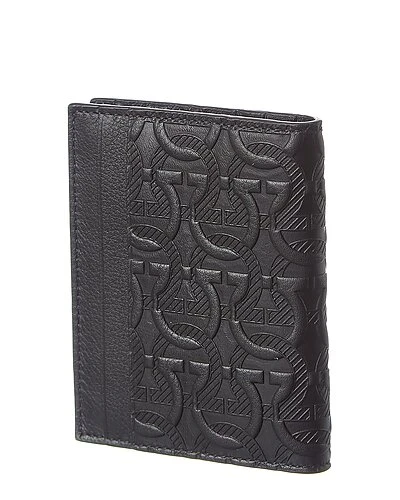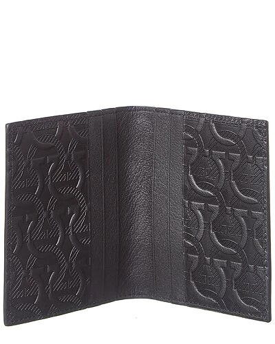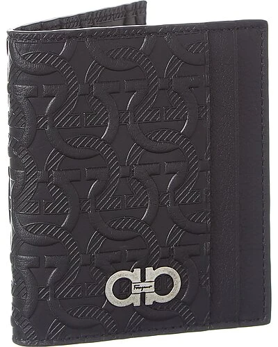 - Gancini Leather Card Holder in black Gancini embossed leather with silver-tone hardware, Gancini detail and card slots