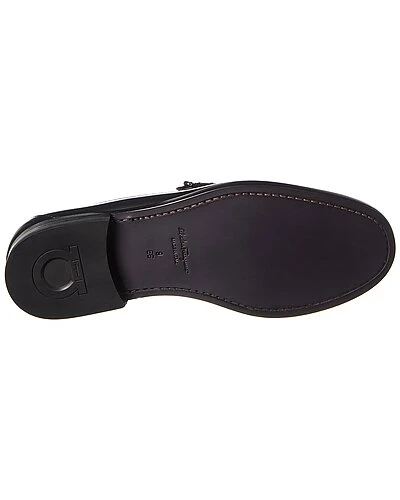 - Penny Leather Loafer in black leather with silver-tone hardware and Gancini detail
