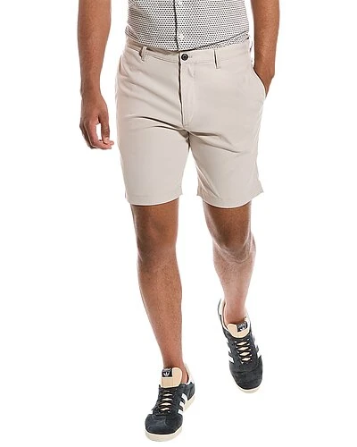 - Zaine Tech Chino Short in putty with belt loops and four-pocket styling