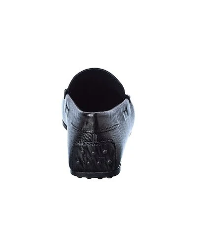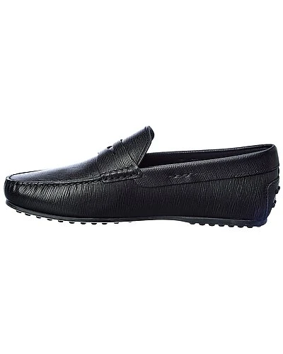 - City Gommino Leather Loafer in black leather with penny slot and embossed logo