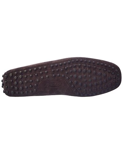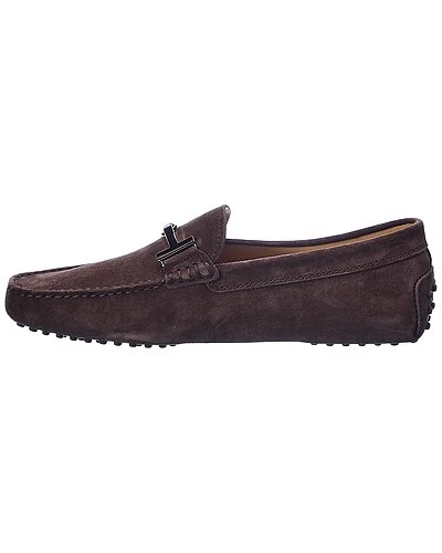 - Gommini Suede Loafer in brown suede and silver-tone hardware with logo accents