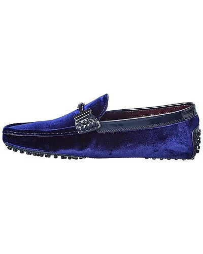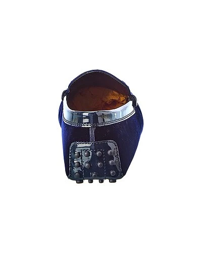 - Gommini Velvet & Patent Loafer in navy velvet and patent leather and silver-tone hardware with logo accents