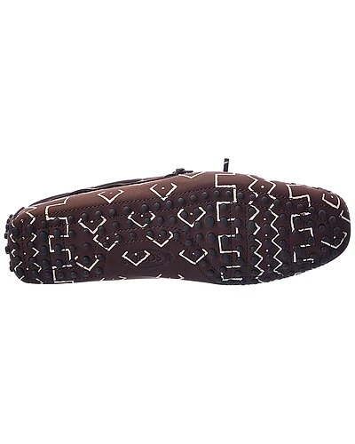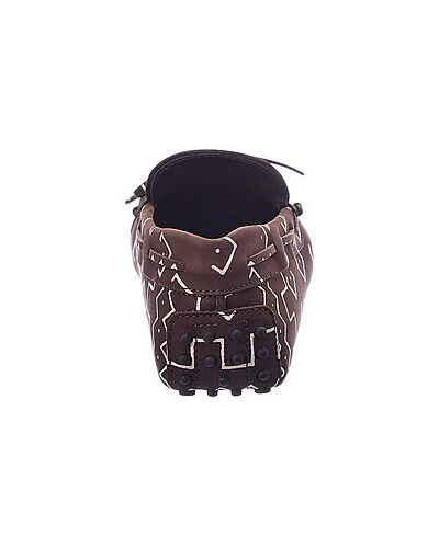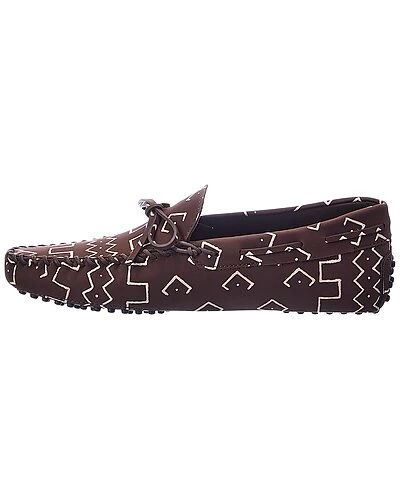 - New Gommini Leather Loafer in brown printed leather and silver-tone hardware with self-tie detail