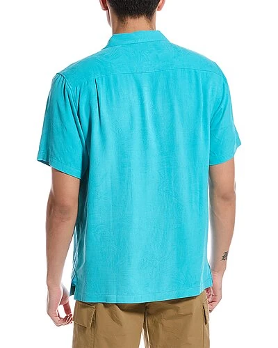 - Tropic Isles Silk Camp Shirt in ming jade with jacquard design and left chest pocket