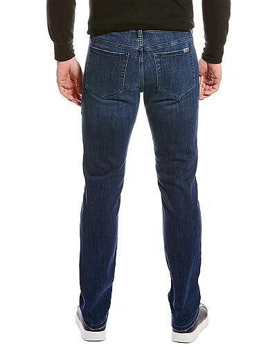 - Slim in Stratton with belt loops, whiskering and fading details, and classic five-pocket styling