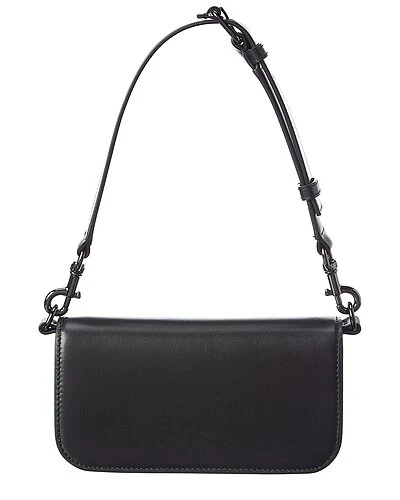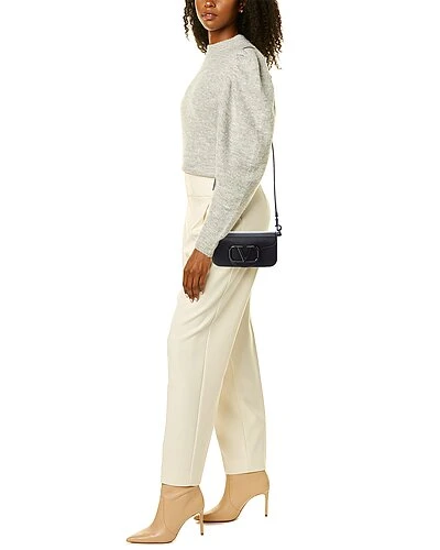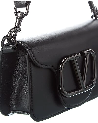 - VLogo Leather Shoulder Bag in black leather and gunmetal-tone hardware with VLogo accent