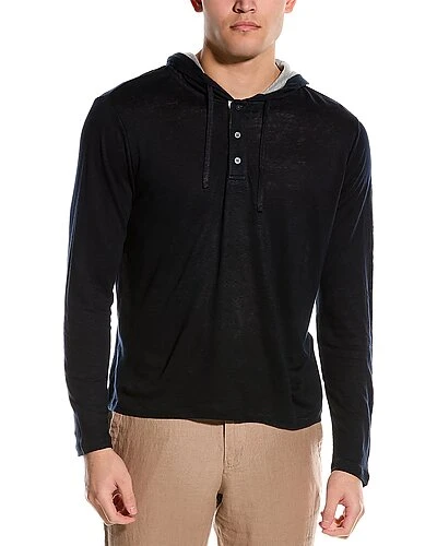 - Linen Henley Hoodie in coastal blue