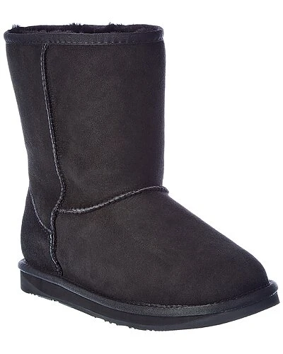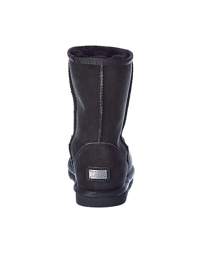 - Cosy Short Suede Boot in black suede and silver-tone hardware with logo plaque