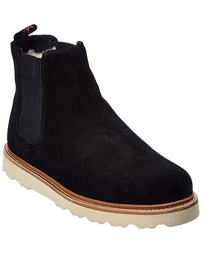 - Yarra Suede Boot in black suede and silver-tone hardware with logo plaque and pull-on tab